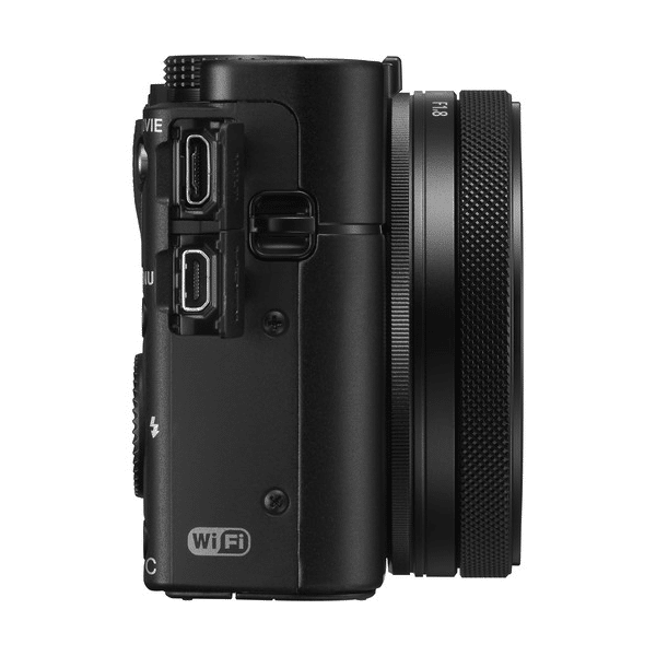 Le port micro-USB permet la recharge et le transfert de données, tandis que la sortie micro-HDMI autorise la lecture directe sur écrans externes. Ces fonctionnalités font du Sony Cyber-shot DSC-RX100 V un appareil parfaitement adapté aux workflows modernes.