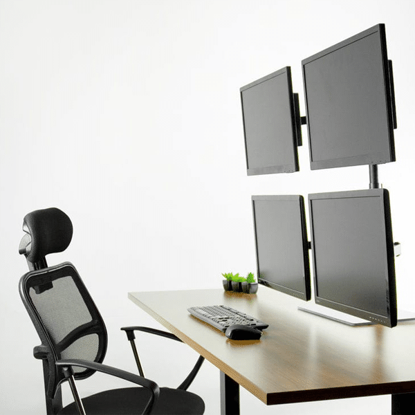 La stabilité du support 4 ecran pour bureau YGMSC-04L est conçue spécifiquement pour supporter quatre écrans de 32 pouces en configuration portrait sans compromis. La base élargie de 35cm de diamètre et le système de contrepoids intégré compensent automatiquement la répartition des masses. Les matériaux en acier renforcé et les points d’articulation surdimensionnés éliminent toute vibration ou oscillation, même lors de frappe intensive au clavier ou manipulation des écrans. Cette stabilité est certifiée par les tests TÜV européens inclus dans notre garantie fabricant.
